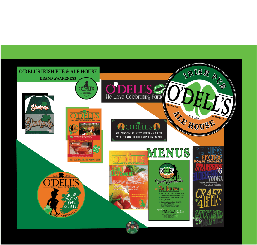Various projects created for O’Dell’s Irish Pub & Ale House